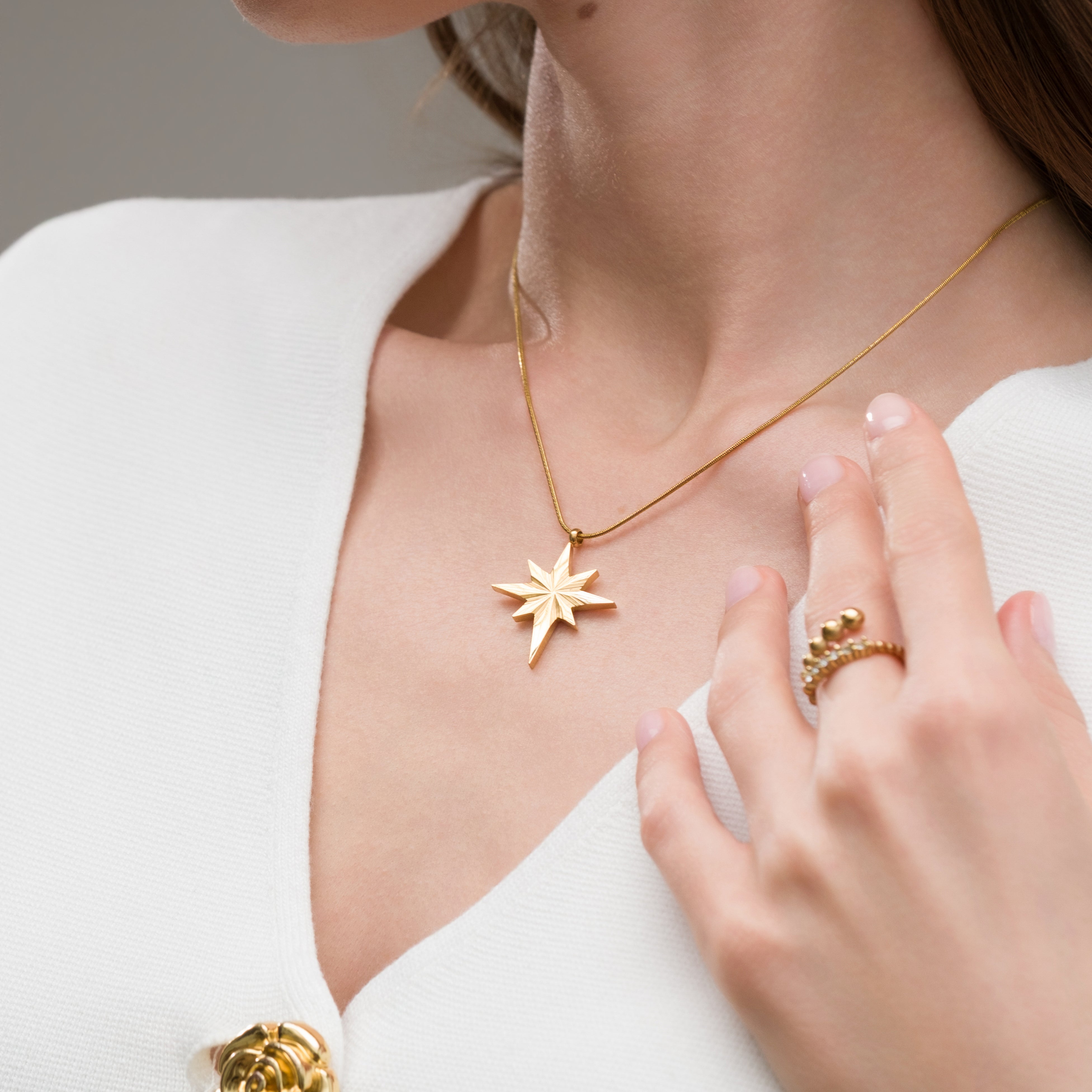 De fleste af vores smykker er fremstillet i guldbelagt 316L rustfrit stål, som gør dem vandfaste, allergivenlige og slidstærke.