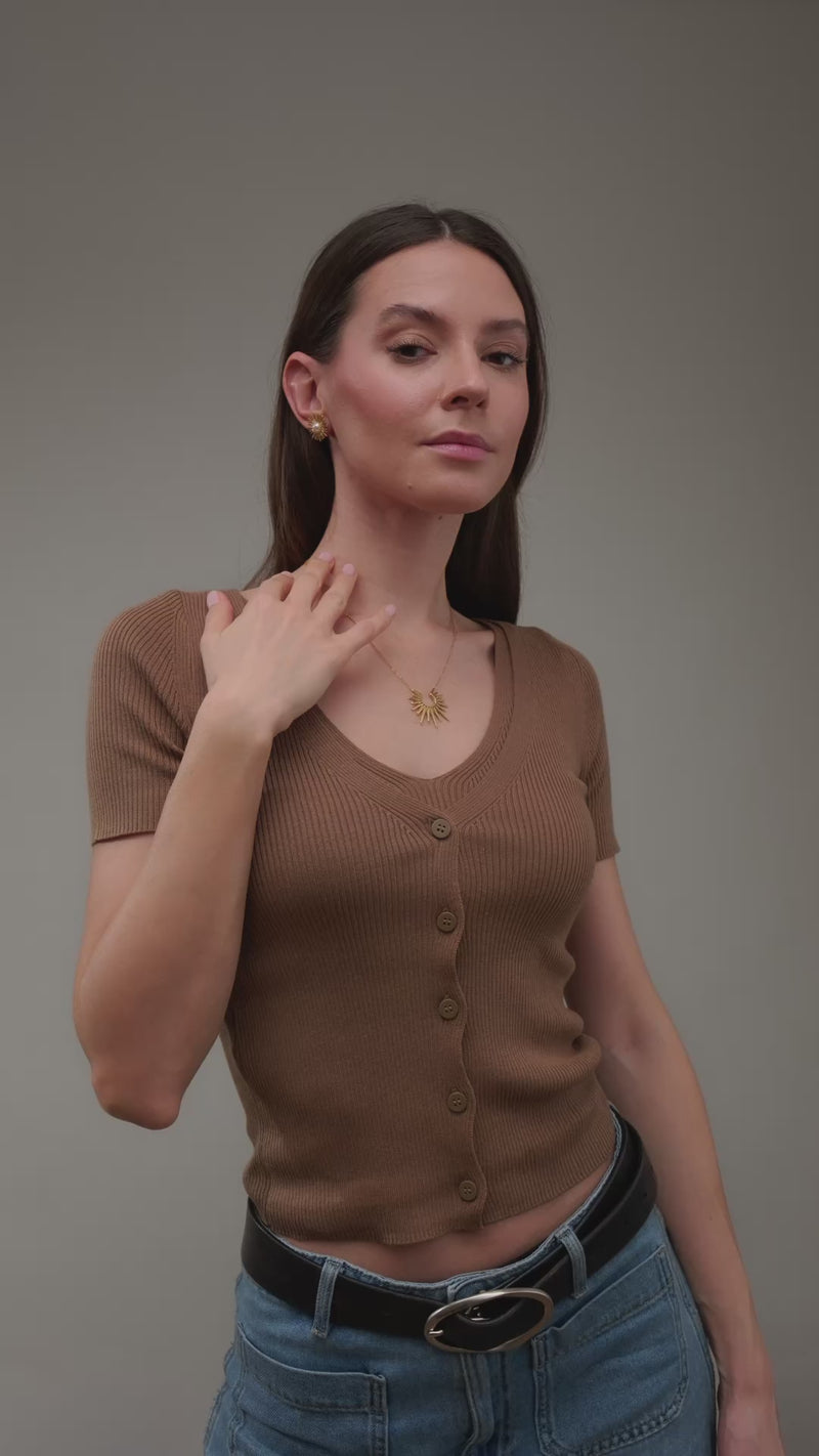 Sola Halskæden er perfekt til dig, der ønsker et smykke, som stråler selvtillid og varme. Brug den alene som et statement eller kombiner den med andre kæder for et personligt lag-på-lag look.